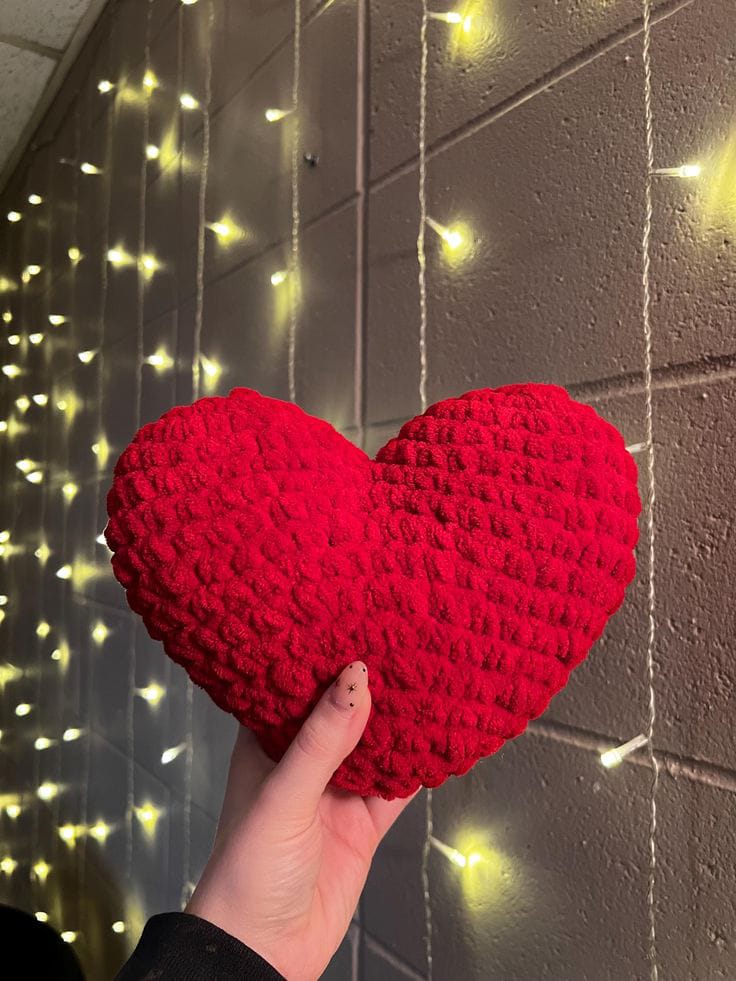 This soft crochet heart pillow is carefully handmade using plush yarn, making it super soft, cozy, and perfect for gifting.